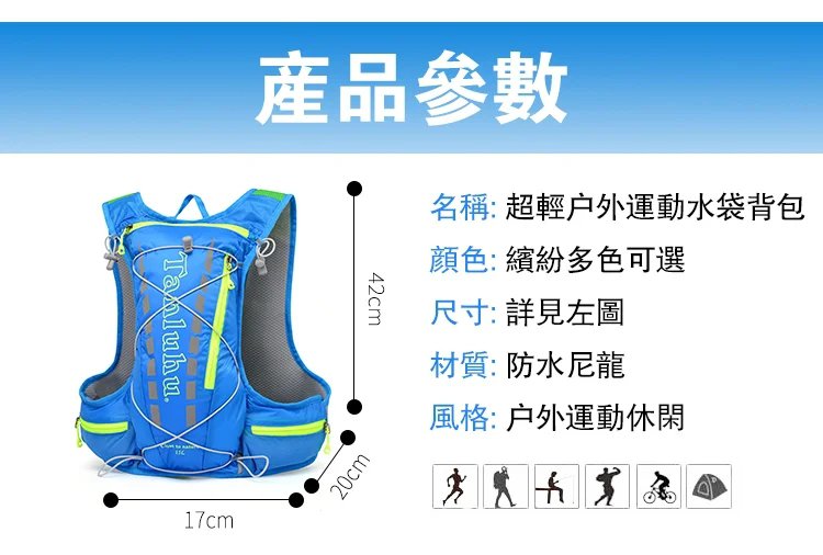 超輕戶外運動水袋背包